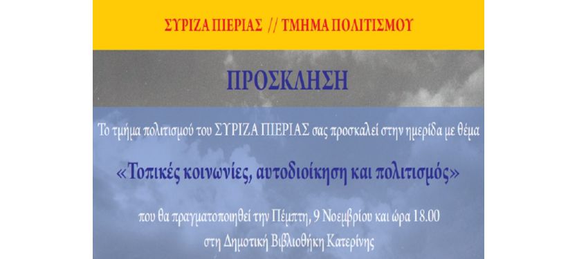 Πέμπτη, 9 Νοεμβρίου και ώρα 18.00 στη Δημοτική Βιβλιοθήκη Κατερίνης