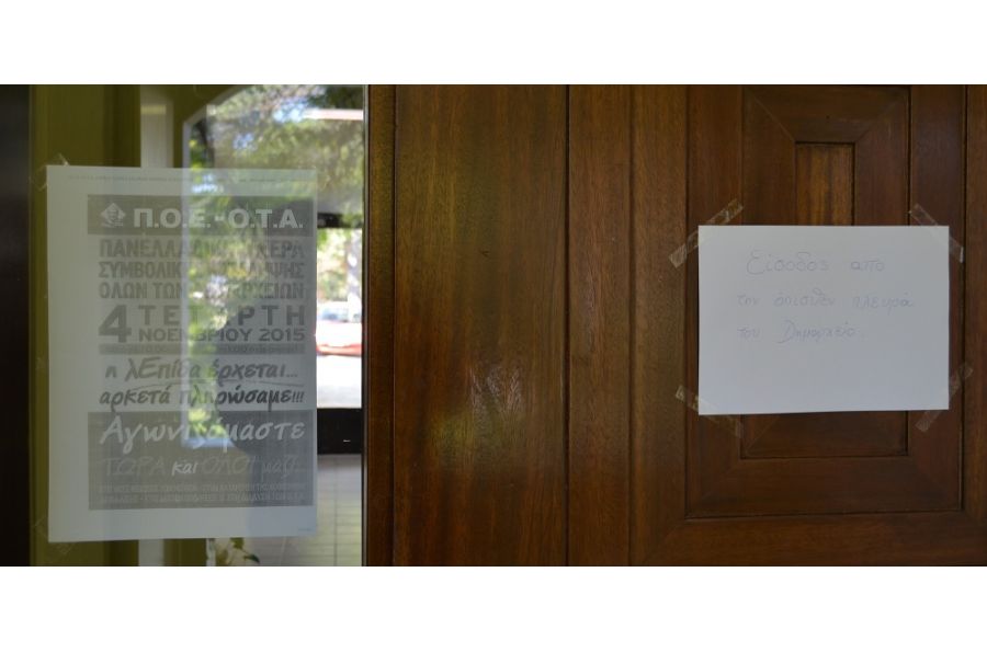 Για τρείς ώρες, οι δημοτικοί υπάλληλοι της χώρας, καταλαμβάνουν ταυτόχρονα τα Δημαρχεία όλης της χώρας, την Τετάρτη 4.11.2015.