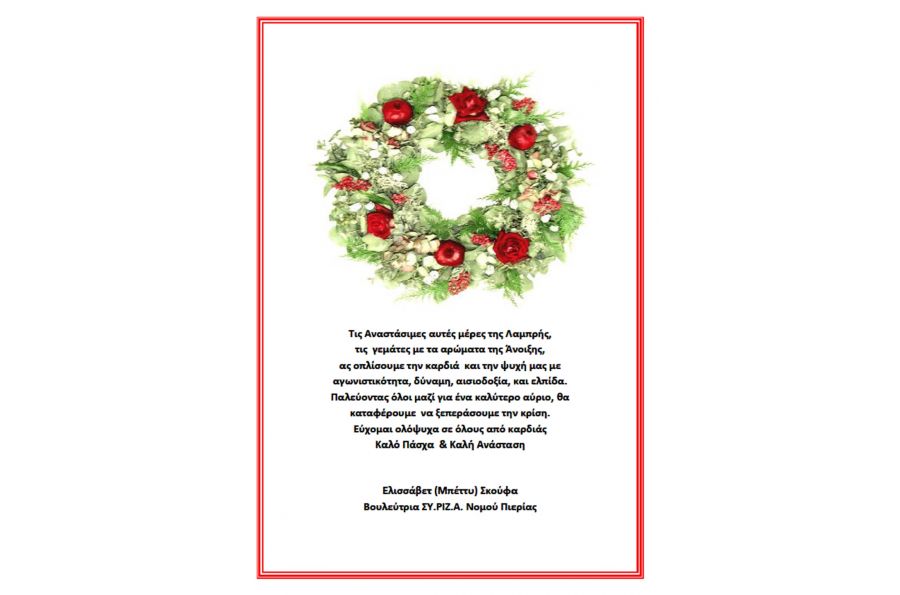εύχεται στα μέλη, στις φίλες, στους φίλους της και σε όλους τους πολίτες της Πιερίας