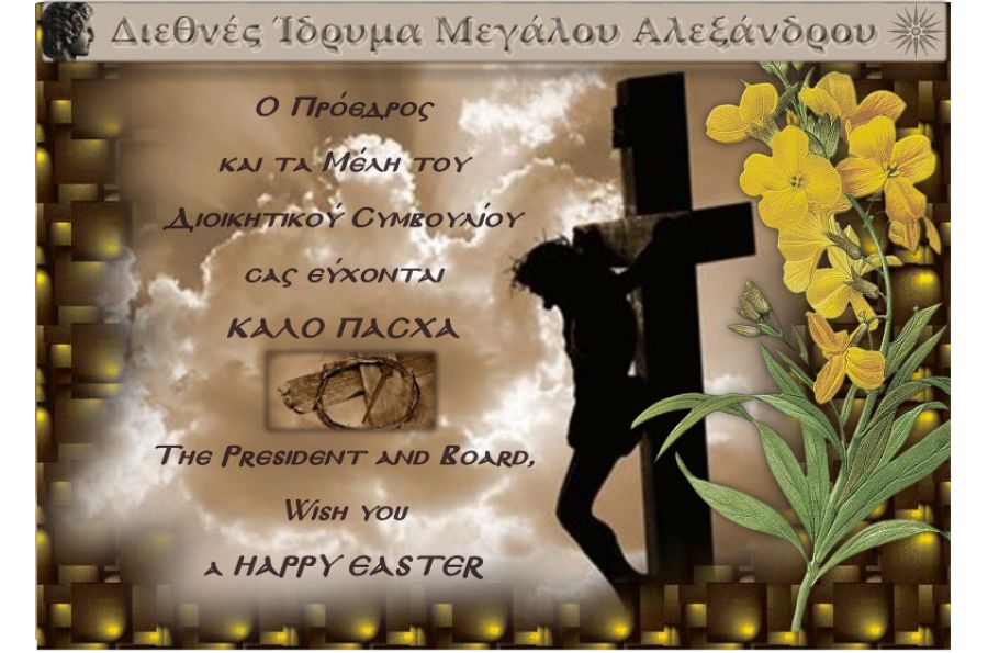 Για τις Άγιες ημέρες του Πάσχα τις θερμότερες ευχές μου, για υγεία, ευτυχία, ειρήνη, πρόοδο και με ανθρωπιά,  ενότητα, συνοχή να συμπαρασταθούμε σε κάθε δοκιμαζόμενο συνάνθρωπο,  διδασκόμενοι από την ουσιαστική, ατέρμονη και ανιδιοτελή αγάπη του Χριστού προς τους ανθρώπους.