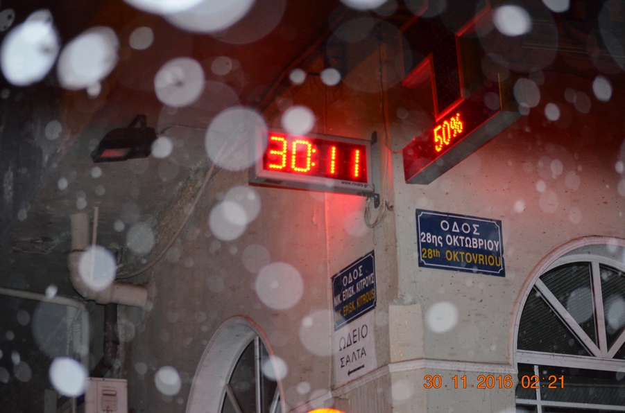 Μέχρι εκείνη την ώρα κανένας δρόμος στο Δήμο μας δεν αντιμετώπιζε πρόβλημα από τις κακές καιρικές συνθήκες, ενώ στις παραλιακές περιοχές έπεφτε χιονόνερο. Η πρόγνωση της ΕΜΥ θέλει τη θερμοκρασία να πέφτει κι άλλο και να είναι περίπου στους -4 τα ξημερώματα της 30ης.11.2016.
