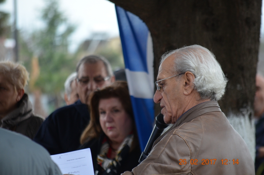 Η επιλογή του δημάρχου καταγγέλθηκε από τους διοργανωτές και χαιρετίστηκε η πρόσφατη αθώωση του δημάρχου Πάτρας που είχε παραπεμφθεί σε δίκη, μετά την άρνησή του να διαθέσει χώρους του Δήμου για τον προεκλογικό αγώνα της νεοναζιστικής οργάνωσης. Το ιστορικό των δραματικών γεγονότων του Φλεβάρη του ’43 περιέγραψε ο πρόεδρος του ΔΣ της τοπικής ΠΕΑΕΑ-ΔΣΕ, ενώ παραβρέθηκαν –μεταξύ άλλων- ο πρώην βουλευτής, Ζήσης Ζάννας, και ο ανεξάρτητος δημοτικός σύμβουλος Κατερίνης, Γιάννης Φάκας.