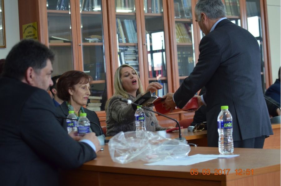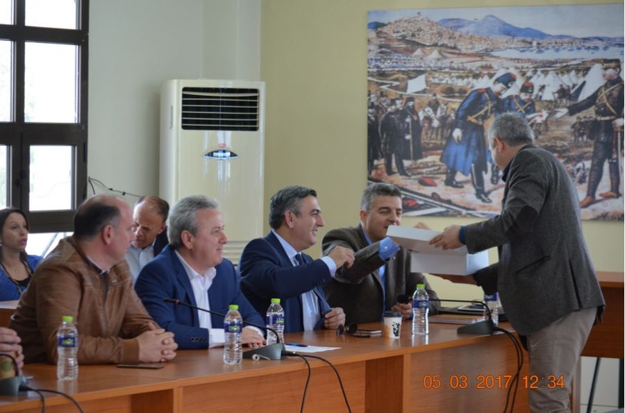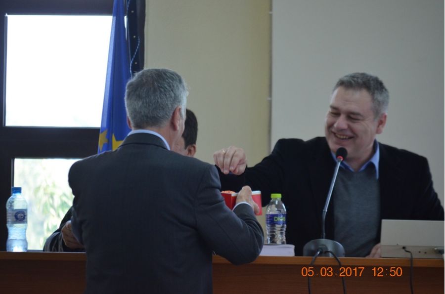 Δυο εορτάζοντες δέχτηκαν τις ευχές και πρόσφεραν κεράσματα στο Δημοτικό Συμβούλιο και τους παρευρισκόμενους, για τα γενέθλιά τους. Ο πρόεδρος της ΔΕΥΑΑΝΟ Θόδωρος Σιώκας και ο πρώην αντιδήμαρχος, Πέτρος Κιάφας.