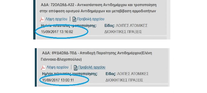 υποψηφιότητες μέχρι την Παρασκευή 22 Σεπτεμβρίου 2017 στις 13:00