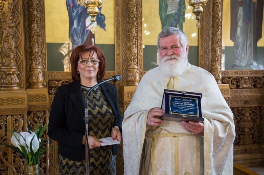 Ο πατέρας Δημήτριος Κουτσιμάνης που διακονεί την τοπική Εκκλησία του Δίου για πάνω από τρείς δεκαετίας, τιμήθηκε με αναμνηστική πλακέτα από το Τοπικό Συμβούλιο της τοπικής Κοινότητας Δίου ως δείγμα ευγνωμοσύνης και αγάπης για τη πολυετή διακονία και προσφορά του στη τοπική κοινωνία του Δίου, εξαίροντας το πολυεπίπεδο ποιμαντικό του έργο. Την πλακέτα επέδωσε η Ελένη Ζησιάδου.