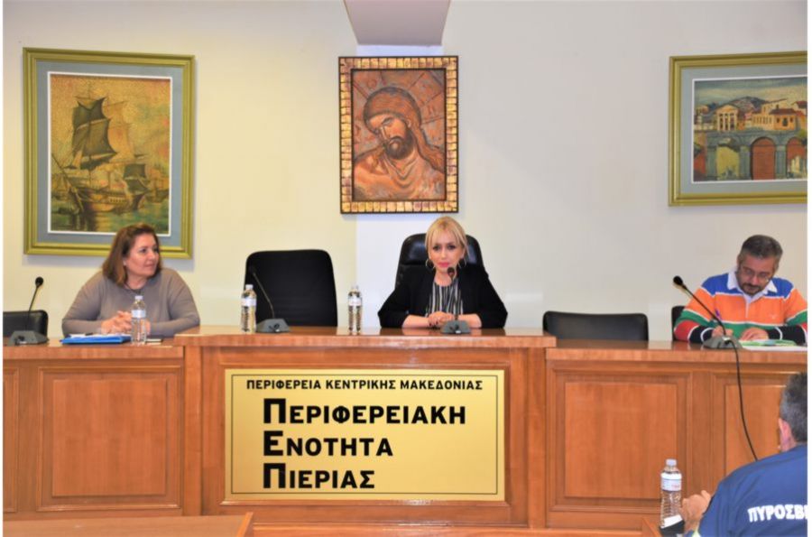 Σύσκεψη του Συντονιστικού Οργάνου Πολιτικής Προστασίας (Σ.Ο.Π.Π.) Περιφερειακής Ενότητας Πιερίας με θέμα το σχεδιασμό και τις δράσεις Πολιτικής Προστασίας για την αντιμετώπιση κινδύνων λόγω των δασικών πυρκαγιών, κατά τη φετινή αντιπυρική περίοδο, πραγματοποιήθηκε στην αίθουσα συνεδριάσεων της Περιφερειακής Ενότητας Πιερίας.