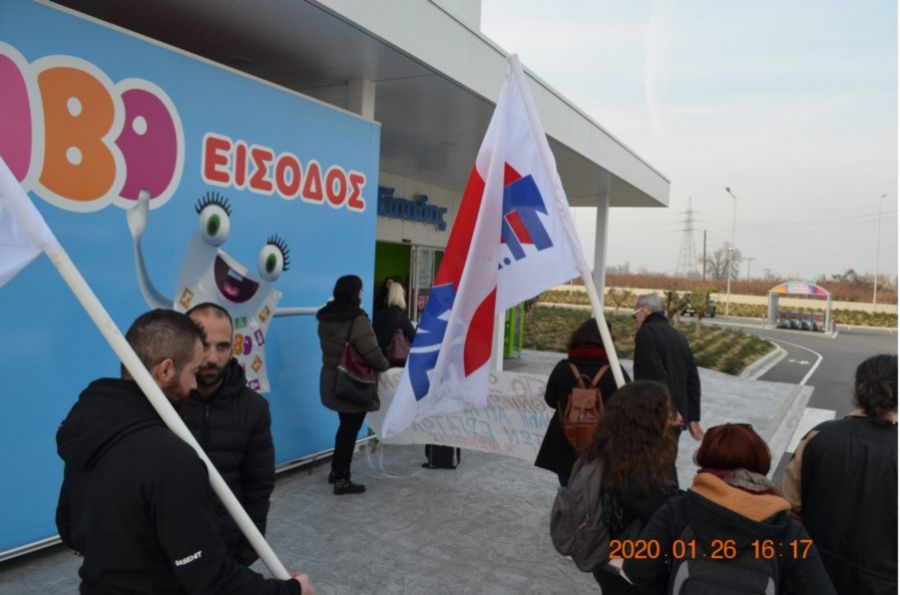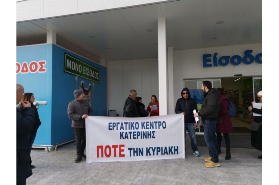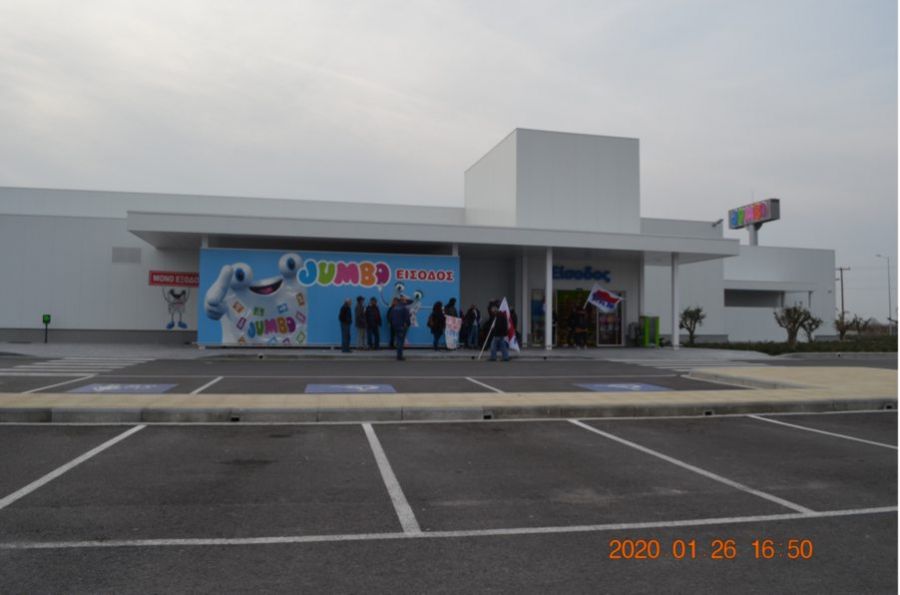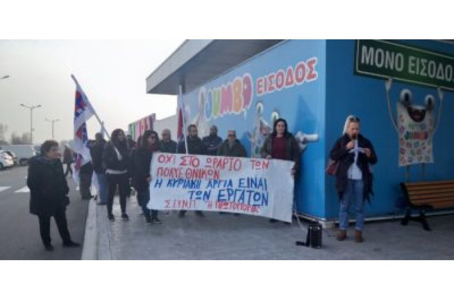 Για δεύτερη συνεχόμενη Κυριακή το Συνδικάτο Ιδιωτικών Υπαλλήλων Ν. Πιερίας “Η ΠΡΩΤΟΠΟΡΙΑ” πραγματοποίησε παράσταση διαμαρτυρίας έξω από το κατάστημα Jumbo στο Βαρικό Πιερίας, δηλώνοντας την αντίθεσή του στην απόφαση της εταιρίας για άνοιγμα του καταστήματος όλες τις Κυριακές του έτους.