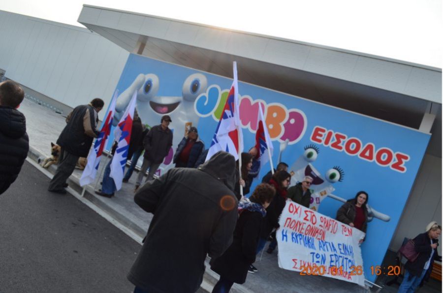 ΣΥΓΚΈΝΤΡΩΣΗ ΣΩΜΑΤΕΙΩΝ Εργατικού Κέντρου Κατερίνης ενάντια στο άνοιγμα του JUMPO την Κυριακή 26-1-2020
