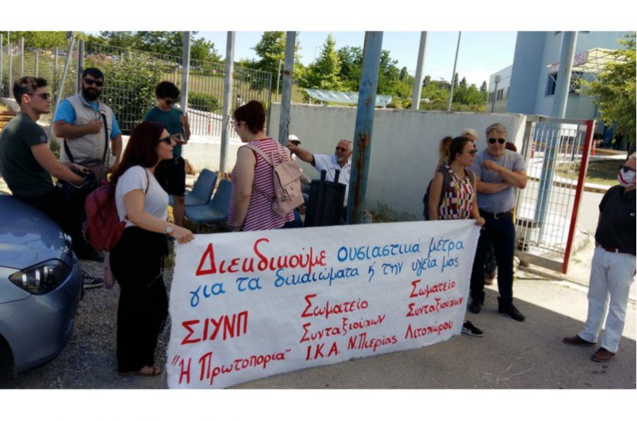 Κινητοποίηση πραγματοποίησαν εργατικά σωματεία στο Γενικό Νοσοκομείο Κατερίνης στις 16/6, στο πλαίσιο της πανυγειονομικής απεργίας που κήρυξε η ΟΕΝΓΕ. Το παρόν έδωσαν το Συνδικάτο Ιδιωτικών Υπαλλήλων Ν. Πιερίας «Η ΠΡΩΤΟΠΟΡΙΑ», το Σωματείο Συνταξιούχων ΙΚΑ Ν. Πιεριας και εργαζόμενοι μέλη άλλων σωματείων.
