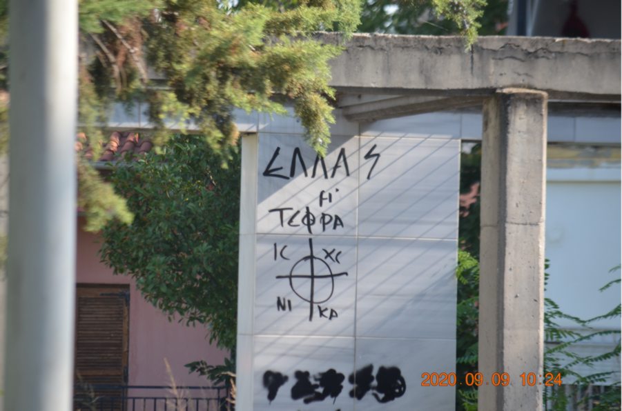 Λίγες μέρες πριν, οι γνωστοί “μακεδονομάχοι” της Κατερίνης ξαναχτύπησαν: έγραψαν απαξιωτικά -αν όχι απειλητικά- συνθήματα έξω από το σπίτι του πρώην βουλευτή του ΣΥΡΙΖΑ, Στέργιου Καστόρη. Προχθές, πολίτες της Κατερίνης έσβησαν τα συνθήματα και δήλωσαν την πρόθεσή τους να γίνει η Κατερίνη “πόλη κλειστή στον φασισμό”. Η ΕτΟ αναρωτήθηκε πότε θα πράξουν το ίδιο οι πλέον αρμόδιοι, οι πολιτικοί της πόλης και του νομού. Σήμερα, φέρνει στο φως νέα στοιχεία και αναρωτιέται το ίδιο και για τα όργανα της -οργανωμένης- πολιτείας μας.
