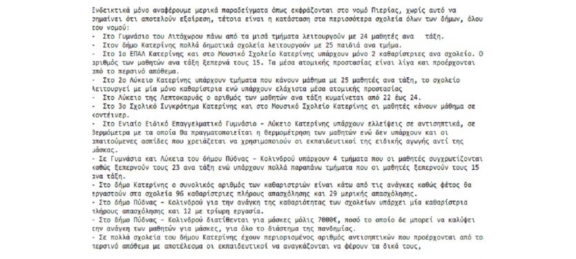 ανακοίνωση του ΚΚΕ Πιερίας με συγκεκριμένα στοιχεία σημαντικών ελλείψεων στα σχολεία λίγο πριν τον αγιασμό-πρώτο κουδούνι…