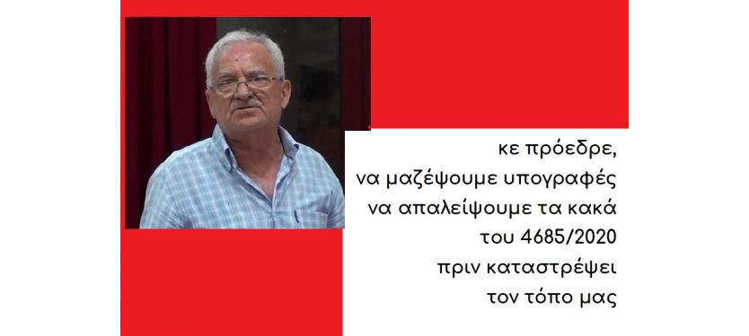 τώρα που ξέρουμε όλοι τι ακριβώς κάνει ο 4685/2020 πρέπει να καταργήσουμε τις καταστροφικές διατάξεις του – στον τόπο μας, πρώτος το διαπίστωσε και το πρότεινε ένας προβεβλημένος αιρετός μας