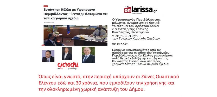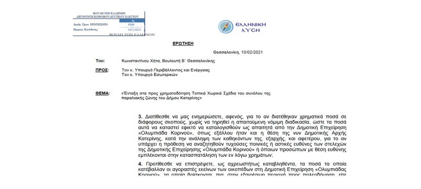 δύο Υπουργεία – επ’ ευκαιρία της χρηματοδότησης των Χωρικών Σχεδίων της παραλιακής ζώνης Κατερίνης