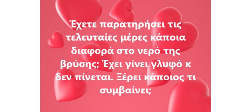 ιδέα σας είναι – να πεις αυξάνει το ύψος της θάλασσας και εισχωρούν τα θαλάσσια ύδατα εις τα επίγεια ή υπάρχει μία κάποια υπερκατανάλωσις ποσίμου ύδατος, βρε αδερφέ, να το καταλάβω… αλλά δεν υπάρχουν… κάτι άλλο συμβαίνει (παρενέργεια εμβολίων;;;)