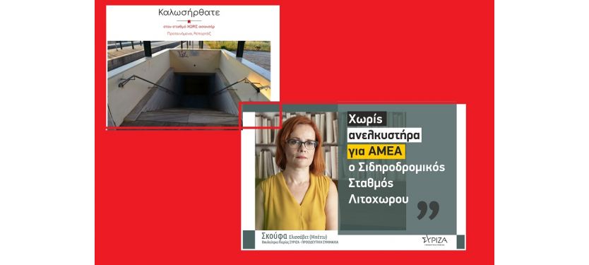 με ερώτηση Σκούφα – ο μυθικός μας τόπος διεκδικεί τουρισμό και ανάπτυξη και στον κοντινότερο στον Όλυμπο σταθμό τραίνου… δεν υπάρχει ασανσέρ, όπως υπάρχει σε όλους σταθμούς της χώρας