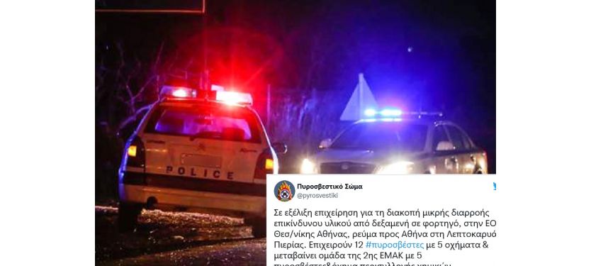 ατύχημα σε φορτηγό με επικίνδυνο φορτίο μπλοκάρισε την εθνική στο ύψος του Λιτοχώρου