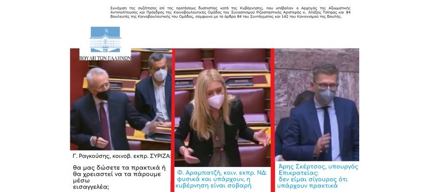 ο ΣΥΡΙΖΑ-ΠΣ ζητάει τα πρακτικά από την σύσκεψη κυβέρνησης-Αττικής Οδού και η κυβέρνηση στο ανώτερο επίπεδο απαντάει στη Βουλή, στην συζήτηση της πρότασης δυσπιστίας