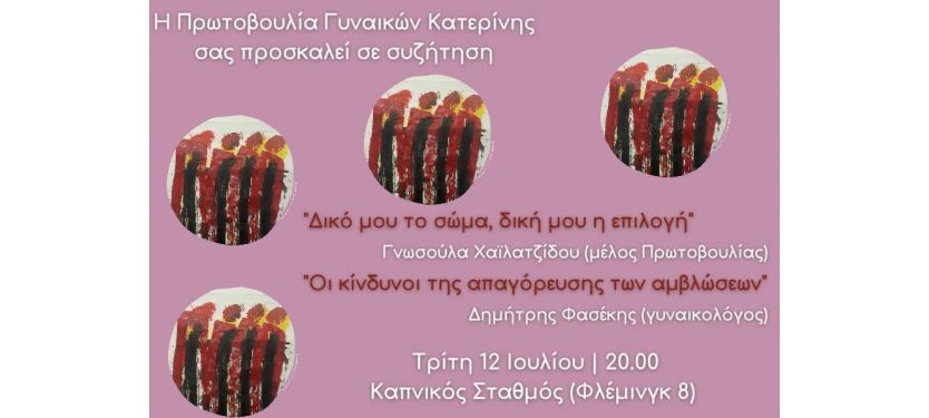 Πρωτοβουλία Γυναικών Κατερίνης: διοργανώνουμε εκδήλωση-συζήτηση την Τρίτη 12 Ιουλίου 2022 στις 8.00 μ.μ. στο χώρο του Καπνικού Σταθμού