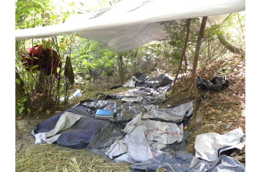 - διέμεναν σε πρόχειρα παραπήγματα, όπου βρέθηκαν οικιακά σκεύη, τρόφιμα, κλινοσκεπάσματα και άλλα αντικείμενα που παρείχαν τη δυνατότητα στους δράστες να διαβιούν εκεί, ενώ παράλληλα είχαν τη δυνατότητα να επιτηρούν την ευρύτερη περιοχή, ώστε να αντιλαμβάνονται έγκαιρα τυχόν προσέγγιση των διωκτικών Αρχών.