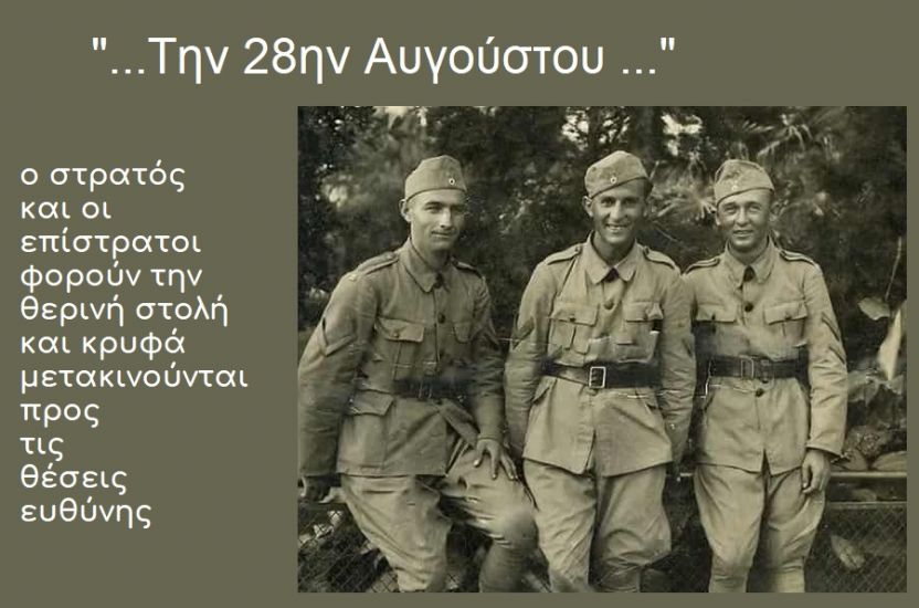 “…Την 28η Αυγούστου” (1940) στην Ελλάδα εξελισσόταν μια εξαιρετικά ζωτική για την χώρα στρατιωτική επιχείρηση με τον πλέον σιωπηλό τρόπο. Μπορεί οι μετέπειτα εξιστορήσεις των γεγονότων να μένουν στα σημαντικότερα ορόσημα, αλλά ως το “ΟΧΙ” της 28ης Οκτωβρίου δεν μεσολάβησε μόνο ο τορπιλισμός της “ΕΛΛΗΣ”, τον Δεκαπενταύγουστο στην Τήνο. Και στο μεταξύ διάστημα τα γεγονότα ήταν εξίσου κρίσιμα και σημαντικά και σχετικά με την κατάληξή τους: τον ελληνοϊταλικό πόλεμο στην Αλβανία.
