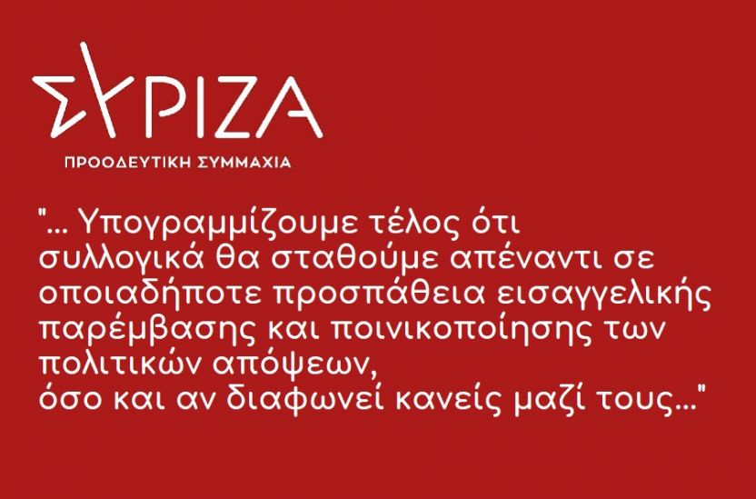 Υπογραμμίζουμε τέλος ότι συλλογικά θα σταθούμε απέναντι σε οποιαδήποτε προσπάθεια εισαγγελικής παρέμβασης και ποινικοποίησης των πολιτικών απόψεων, όσο και αν διαφωνεί κανείς μαζί τους.