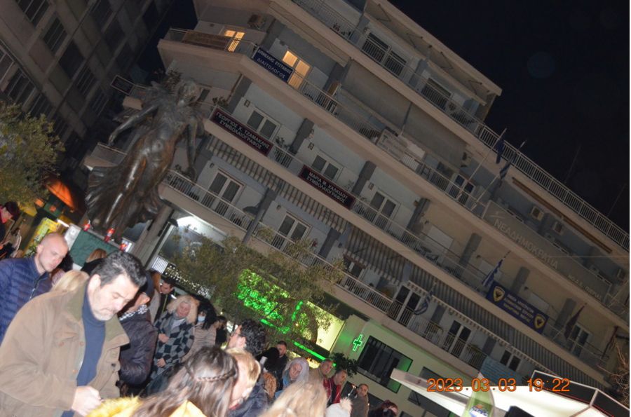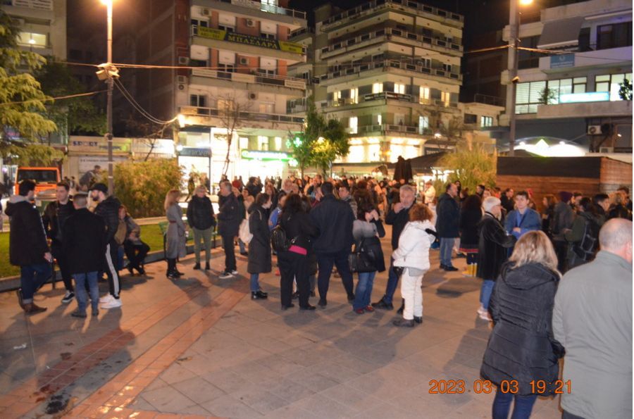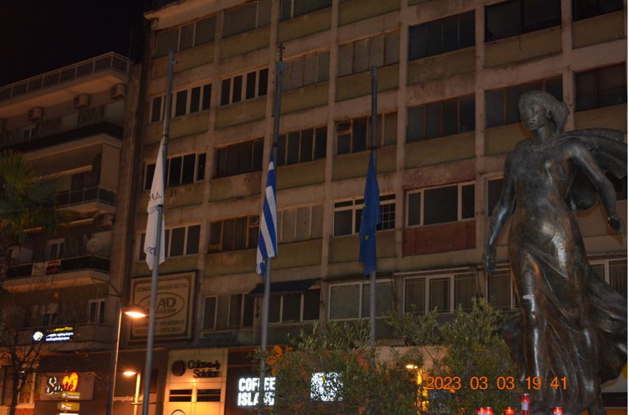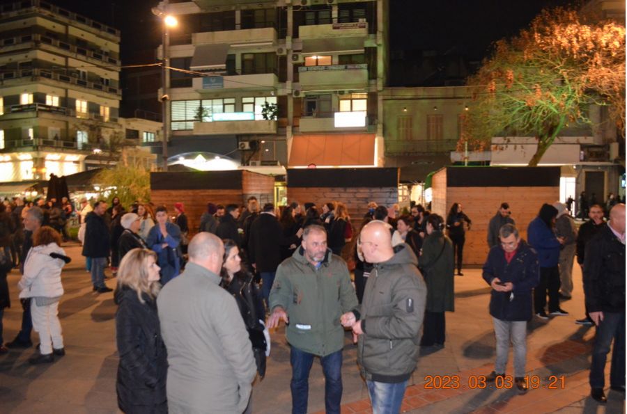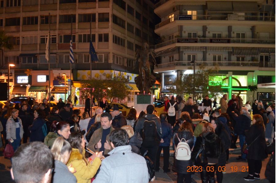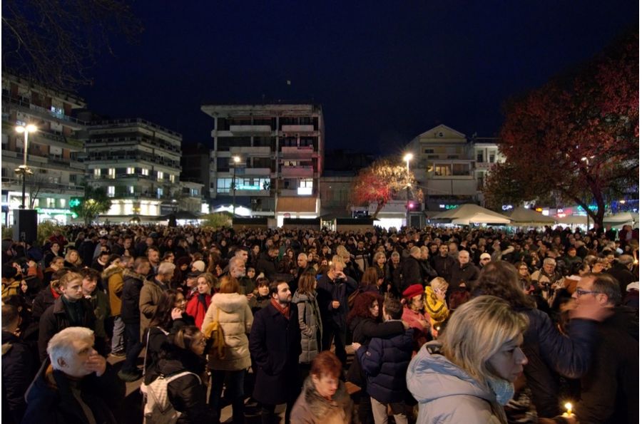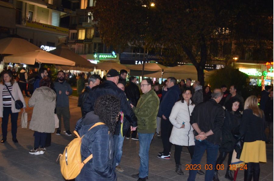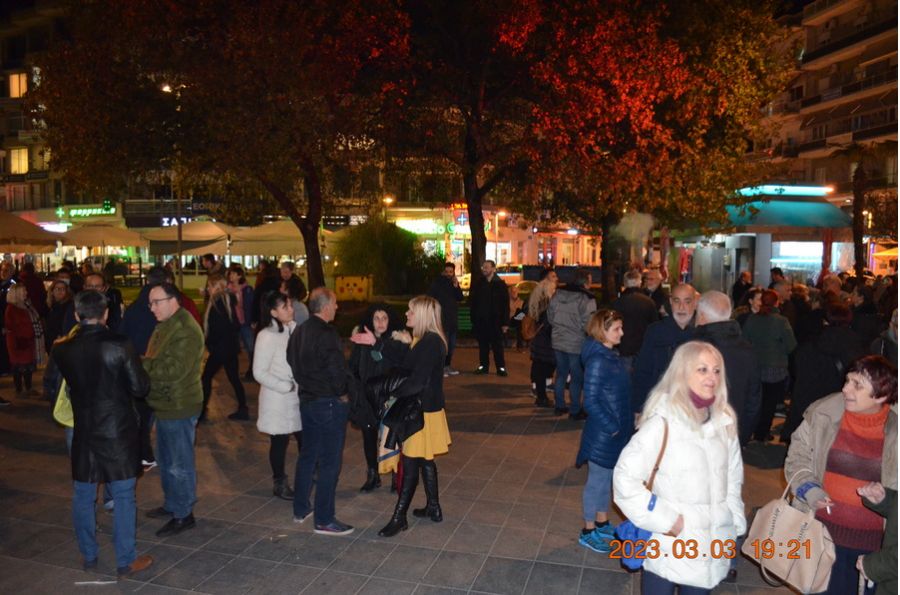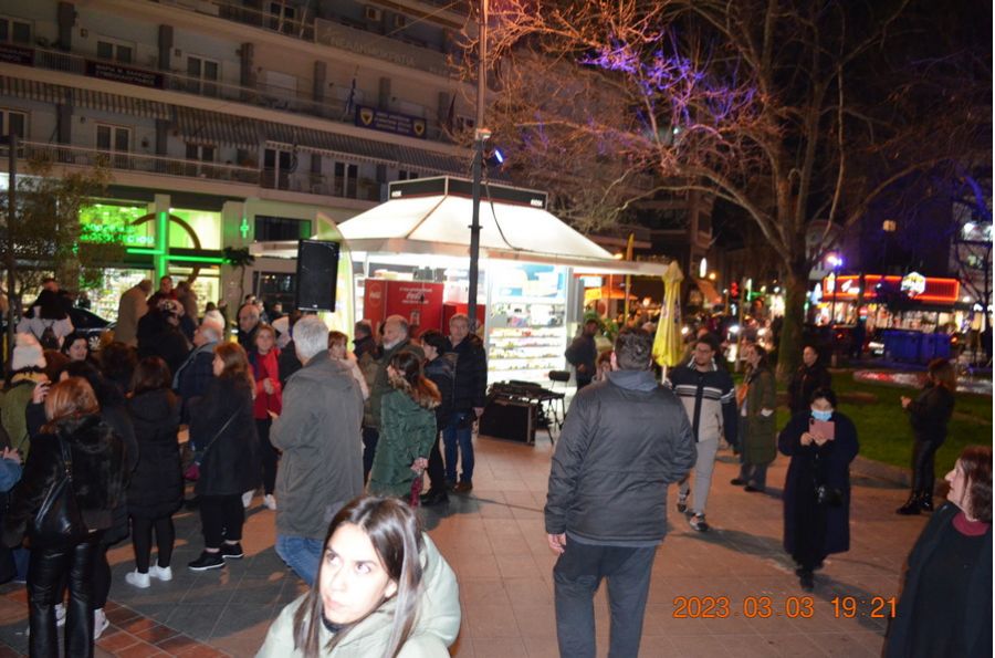 Λίγες ώρες αργότερα, στην κεντρική πλατεία της Κατερίνης, όπως ταυτόχρονα σε όλη την Ελλάδα, η Πιερία προσερχόταν σε μια σιωπηρή διαμαρτυρία για το πολύνεκρο δυστύχημα της 1ης Μαρτίου 2023 και τις ευθύνες της κυβέρνησης και του πρωθυπουργού που μετατρέπουν λεπτό προς λεπτό την αναπάντεχη τραγωδία σε προδιαγεγραμμένη συμφορά που θα συνέβαινε σε τυχαίο χρόνο και χωρίς ιδιαίτερη αφορμή.