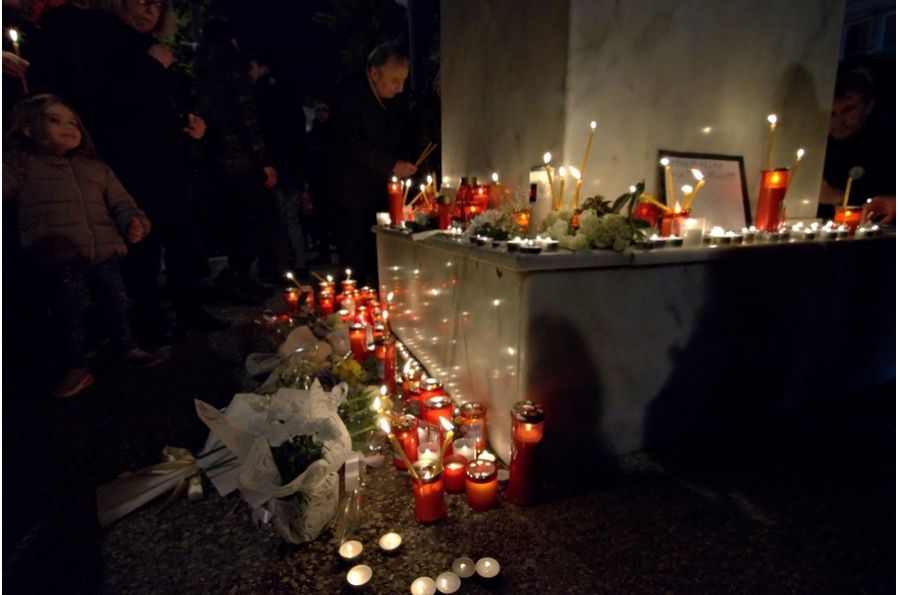 Η Πλατεία Ελευθερίας γέμισε από πολίτες όλων των ηλικιών και πολλούς νέους που βουβά εκφράσανε την θλίψη και τον θυμό τους, σε αναλογίες εντελώς προσωπικές. Ανάβοντας κεριά, σκύβοντας το κεφάλι, κοιτώντας τον ουρανό… τον ουρανό με το θολό φεγγάρι και τις δεκάδες καρακάξες που είχαν καταλάβει τον χώρο, πάνω απ΄ τα κεφάλια των συγκεντρωμένων, όπως συμβαίνει συχνά, καταπώς λένε κάποιοι. Δύο απουσίες ήταν οι σημαντικότερες: της αστυνομίας -και σωστά- και των αιρετών και των εκπροσώπων της κυβέρνησης.