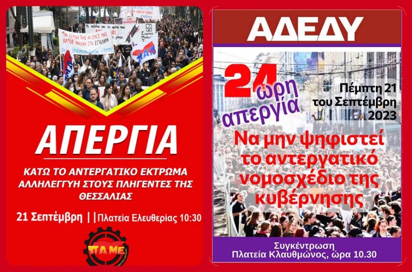 Πέμπτη 21 Σεπτέμβρη απεργία!