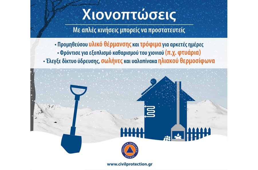 Οδηγίες Πολιτικής Προστασίας για την προετοιμασία σε περίπτωση χιονόπτωσης και παγετού