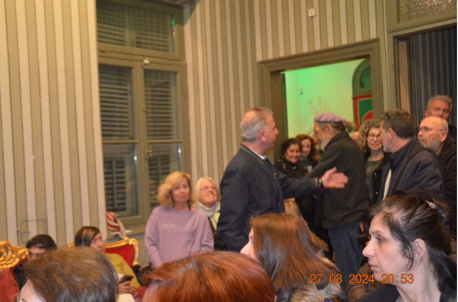 Κατά τη διάρκεια της εκδήλωσης, για τη σημασία της διοργάνωσης μίλησε ο εκπρόσωπος των Φίλων του Μουσείου Πόλης Κατερίνης Γιάννης Ποικιλίδης, ενώ ο ποιητής και φιλόλογος Αντώνης Κάλφας αναφέρθηκε στην ιστορία του θιάσου από τη στιγμή που ιδρύθηκε έως σήμερα. Από την πλευρά του, ο σκηνοθέτης Χάρης Αμανατίδης ευχαρίστησε όσους συμμετείχαν όλα τα χρόνια στην ομάδα του Πήγασου και όσους συνέβαλαν στη διοργάνωση της έκθεσης. Επίσης, απεύθυναν χαιρετισμό η αντιδήμαρχος Κατερίνης Ελίνα Διαμαντοπούλου, η πρώην βουλευτής Πιερίας Μπέττυ Σκούφα, ο εκπρόσωπος του Μουσείου Logic Επιστήμης και Τεχνολογίας Δημήτρης Τριανταφύλλου, ο πρόεδρος της Ένωσης Ποντίων Πιερίας Κώστας Παπουτσίδης καθώς και από την Εθελοντική Ομάδα Δράσης Πιερίας – Καπνικός Σταθμός ο Ηλίας Τσολακίδης. Τον συντονισμό είχε η ηθοποιός του Θεάτρου Πήγασος Κατερίνα Παρλίτση.