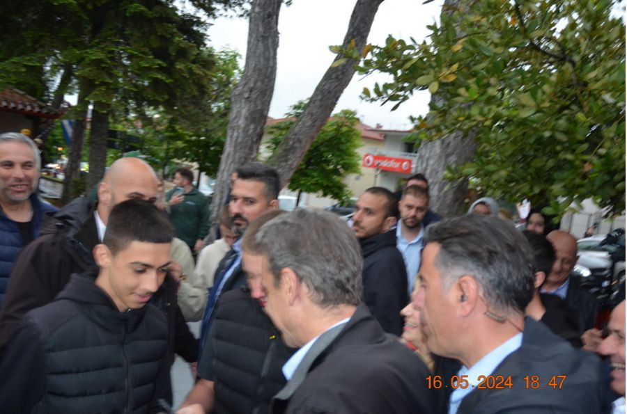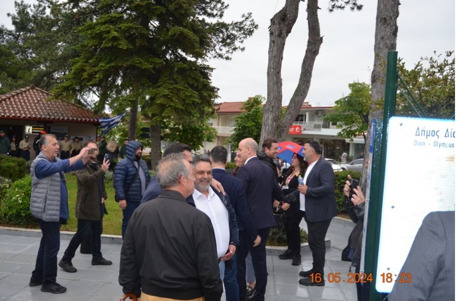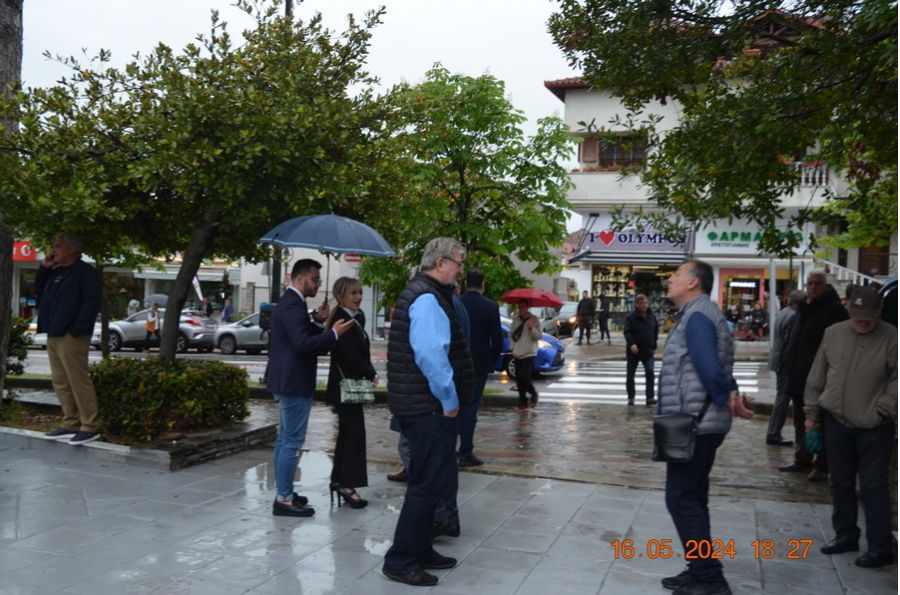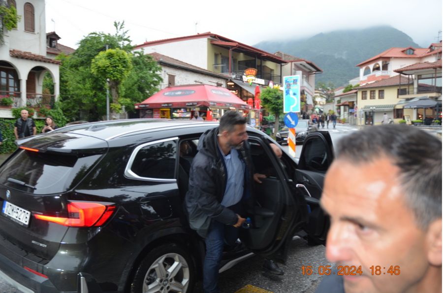 Έφυγε -από το Δημαρχείο Δίου-Ολύμπου- στις 19.18, αλλά έκανε κι ένα πέρασμα απ’ την Πλατεία, πριν πάρει τον δρόμο για την Κατερίνη και την ανοιχτή συγκέντρωση (στο Σιντριβάνι).