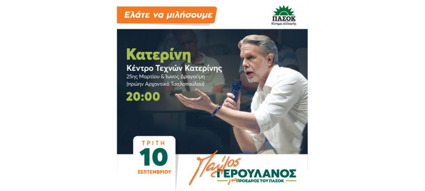 την Πέμπτη, 5.9.2024, στην πλατεία της Κατερίνης