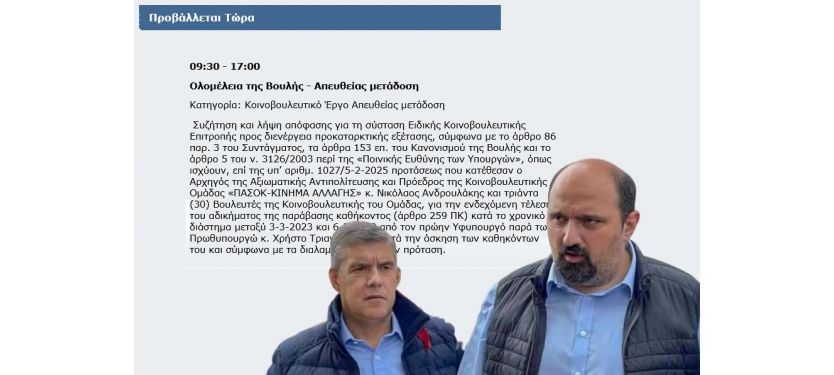 αυτή την ώρα στην Ολομέλεια της Βουλής – για τον τριαντόπουλο και τις ευθύνες του για το “μπάζωμα” της αλήθειας