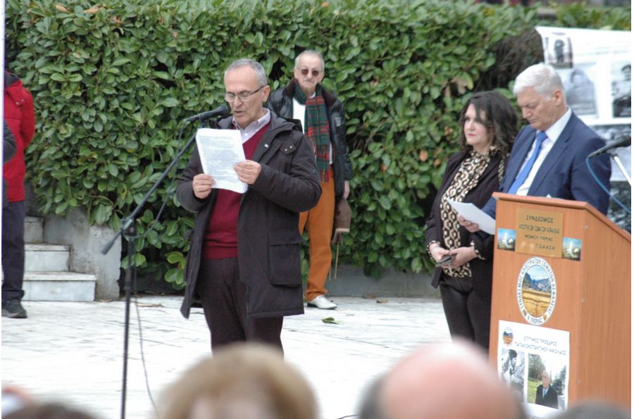 Ο υπέργηρος μοναδικός επιζών της «μάχης του Λιτοχώρου» απευθύνθηκε και πάλι στους καταπατητές του Ηρώου μας μέσω κινητού, το «τρισάγιο» περιελάμβανε και πάλι ομιλίες, κατάθεση στεφάνων και αβάσιμα ιστορικά συμπεράσματα και πολλές διευκρινίσεις ότι το … «τρισάγιο» δεν είναι γιορτή μίσους. Από τους αιρετούς μας, παρευρέθη και πάλι πρώην βουλευτής Πιερίας της ΝΔ, η πρόεδρος του Τοπικού Συμβουλίου Κατερίνης και αστυνομικός, Ελευθερία Κορίτσα-Λεμονοπούλου, και ο πρόεδρος του τοπικού συμβουλίου Λιτοχώρου, στρατηγός εα της ΕΛ.ΑΣ., Στράτος Κυριακάκης, που συμμετέχει ως άτομο και όχι ως αιρετός, όπως δήλωσε παλιότερα. Κανείς από τους τρεις δεν προσφωνήθηκε σε καμία ομιλία, ακόμη κι αυτή του προέδρου του διοργανωτή συλλόγου. Εκτενή αναφορά στον πρώην βουλευτή υπήρξε μόνο στην ομιλία της “δισέγγονης της εθνομάρτυρος Μπουλιώς”, η οποία του απέδωσε και την περιφρούρηση της “τελετής”.