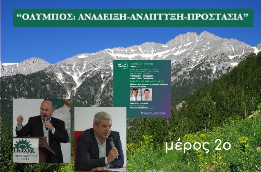 Στην ανοιχτή συζήτηση πολιτών και φορέων της περιοχής μας με θέμα “‘Όλυμπος: Ανάδειξη-Ανάπτυξη-Προστασία” που διοργάνωσε η Νομαρχιακή Επιτροπή Πιερίας του ΠΑΣΟΚ-ΚΙΝΑΛ, στις 30 Απριλίου 2025, με κεντρικούς ομιλητές τους κυρίους Καλπακίδη και Δουδωνή, προσήλθαν ελάχιστοι πολίτες/μέλη του ΠΑΣΟΚ/μη μέλη του ΠΑΣΟΚ, αλλά πολλά στελέχη, τοπικά και από την Θεσσαλονίκη. Από την άποψη αυτή η συζήτηση αυτή θα μπορούσε να ειδωθεί και ως σύσκεψη κομματικών στελεχών και αιρετών της Αυτοδιοίκησης, με θέμα -γενικώς- τον Όλυμπο.