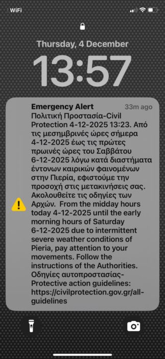 Δήμος Δίου-Ολύμπου: Κλειστές οι σχολικές μονάδες την Παρασκευή 5 Δεκεμβρίου λόγω της επιδείνωσης των επικίνδυνων καιρικών φαινομένων
