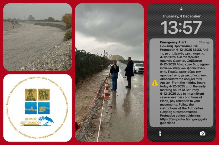 Δήμος Δίου-Ολύμπου: Κλειστές οι σχολικές μονάδες την Παρασκευή 5 Δεκεμβρίου λόγω της επιδείνωσης των επικίνδυνων καιρικών φαινομένων