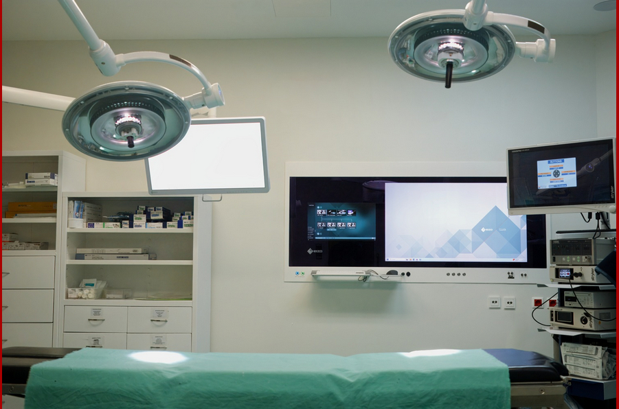 - Ανάρτηση οθονών υψηλής ανάλυσης και στεγανότητας, συνδεδεμένων με τα χειρουργικά μηχανήματα για ζωντανή απεικόνιση και μετάδοση εικόνας.