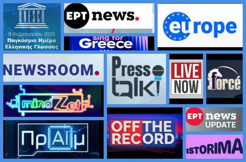 Παρακολουθούμε -με απορία- μια πλημμύρα ξενόγλωσσων όρων: Studio 4, ERT Backstage, Music Night, Pop Hellas, Press room, Talk, Newsroom, Prime Time. Αναρωτιόμαστε: