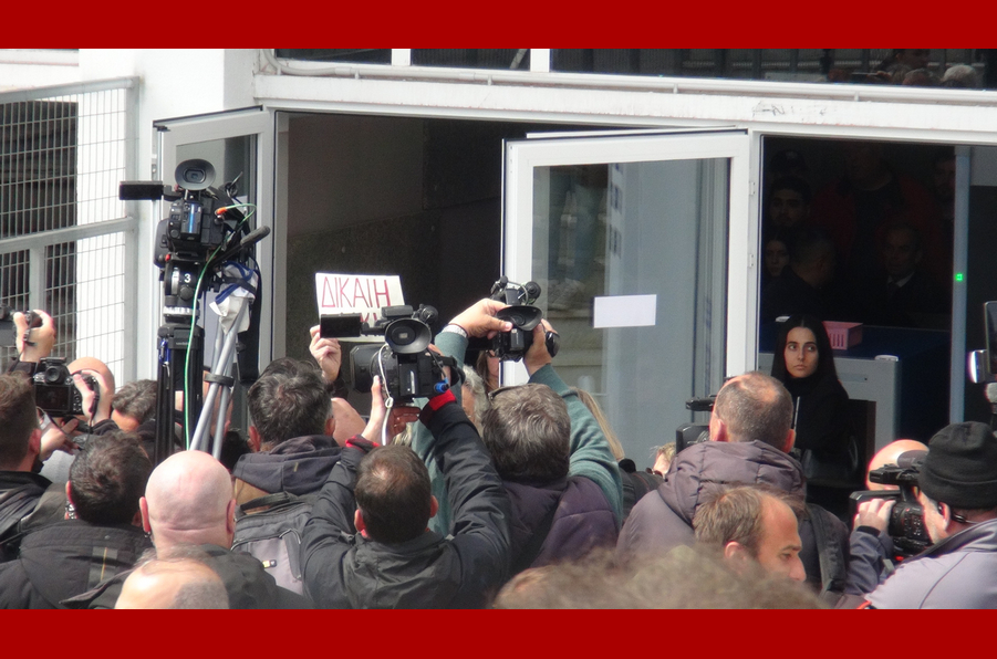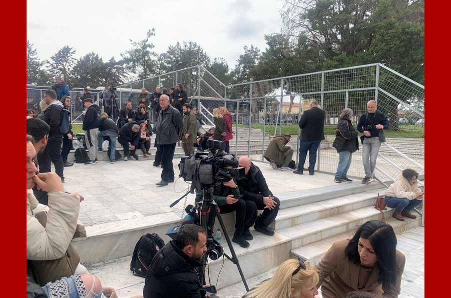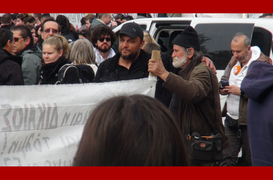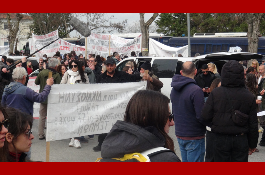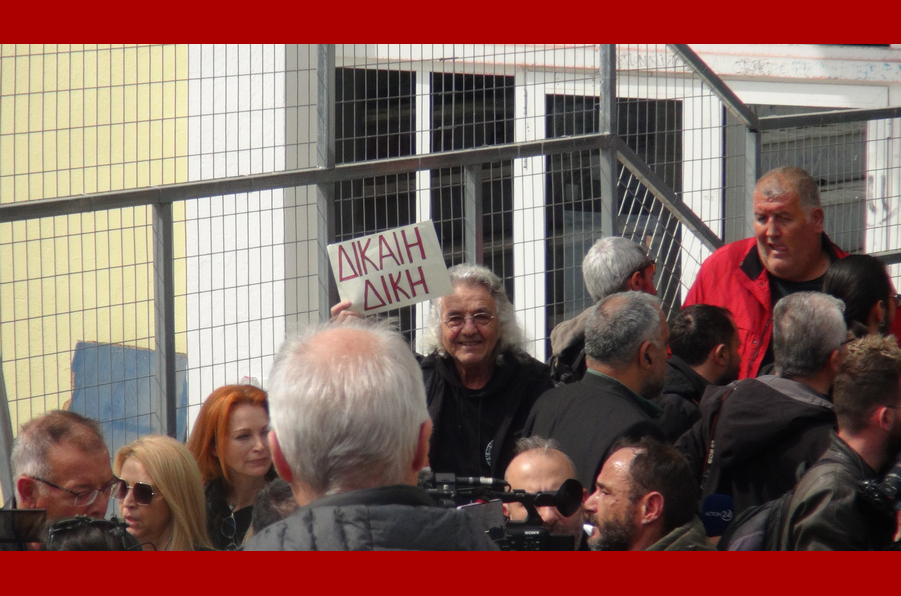 Στο χώρο έξω από το δικαστήριο που φρουρούσαν άνδρες των ΜΑΤ και λεωφορεία τους που είχαν δημιουργήσει τείχος προστασίας, δεκάδες φοιτητές και μέλη συλλογικοτήτων, σωματείων, εργατικών κέντρων και μελών του Τ57 απ’ όλη την Ελλάδα, συνέχισαν καθ’ όλη την διάρκεια της πρώτης μέρας να απαιτούν αυτό που η χώρα απαιτεί εδώ και τρία χρόνια και 23 μέρες: Δικαιοσύνη. –