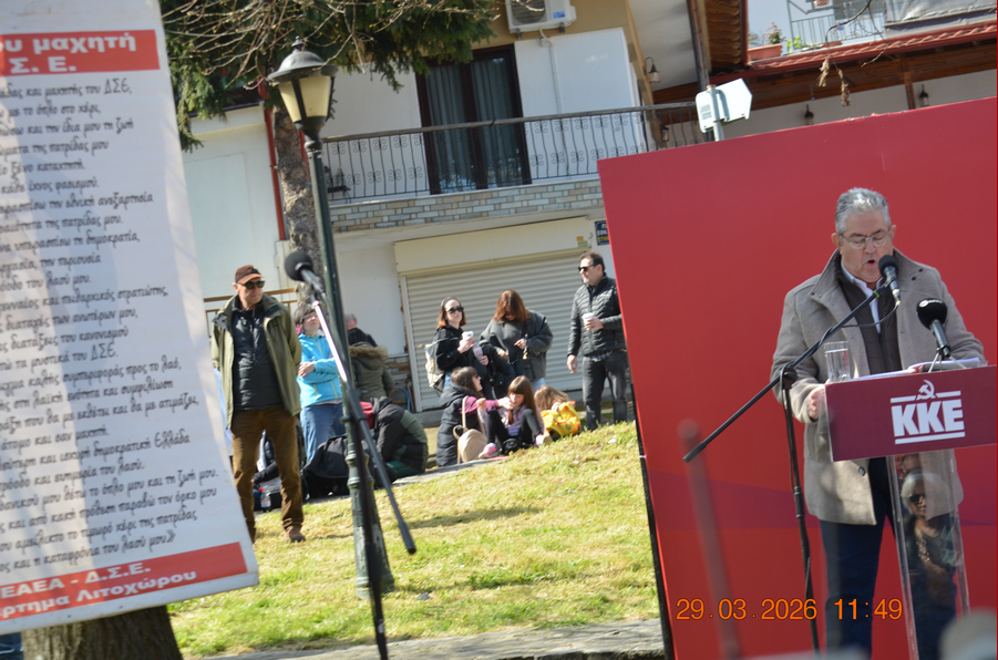 Το πρωί της Κυριακής, 29.3.2026, όλοι όσοι έφτασαν στο Λιτόχωρο για την εκδήλωση στο Μνημείο της Εθνικής Αντίστασης, συγκεντρώθηκαν στο κέντρο της πόλης και με πορεία κινήθηκαν διαδηλώνοντας προς το Μνημείο. Εκεί, η εκδήλωση περιλάμβανε θεατρικό δρώμενο, ένα μικρό ιστορικό της ημέρας, συναυλία, προσκλητήριο νεκρών και φυσικά ομιλία του Δημήτρη Κουτσούμπα.