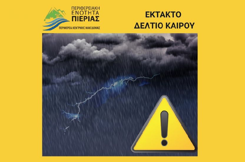 Σημειώνεται ότι η Περιφερειακή Ενότητα Πιερίας, έχει αναρτημένο στο ακόλουθο link [ https://www.pkm.gov.gr/metra-aftoprostasias-kai-prolipsis-apo-to-tmima-politikis-prostasias-p-e-pierias/ ] τα μέτρα αυτοπροστασίας από φυσικά φαινόμενα και καταστροφές.