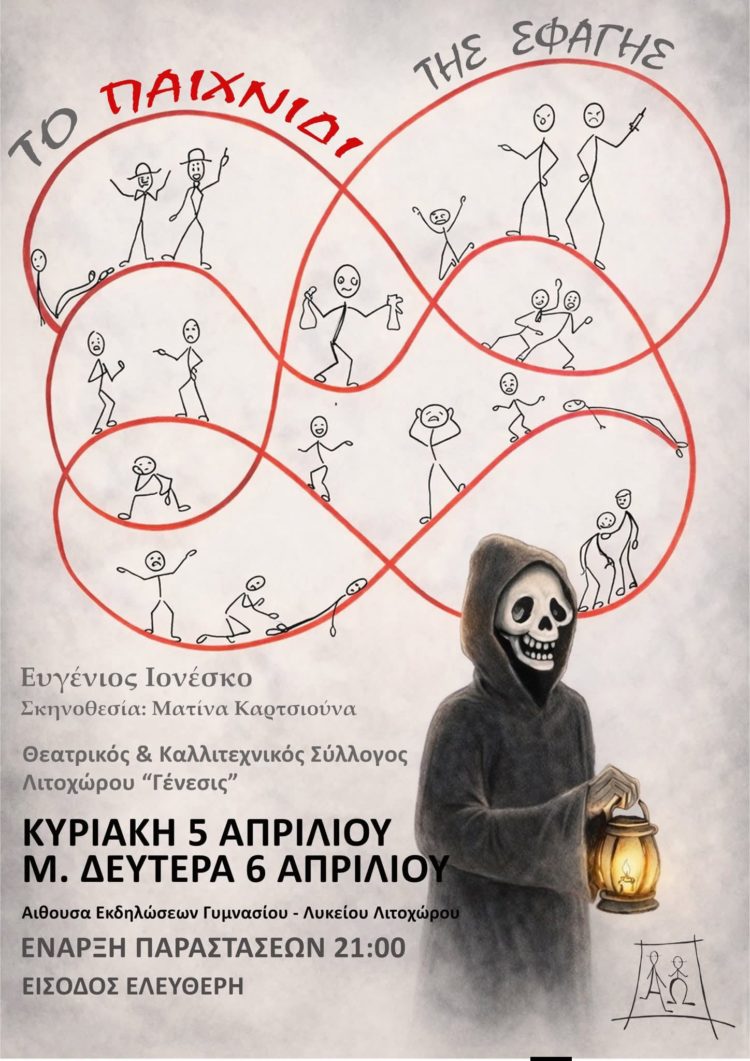 “Ανεβαίνει” για δεύτερη και τελευταία φορά, απόψε στις 9μμ, στην αίθουσα εκδηλώσεων του Γυμνασίου-Λυκείου Λιτοχώρου, από τον θίασο του Θεατρικού και Καλλιτεχνικού Συλλόγου “Γένεσις”, με δωρεάν είσοδο.