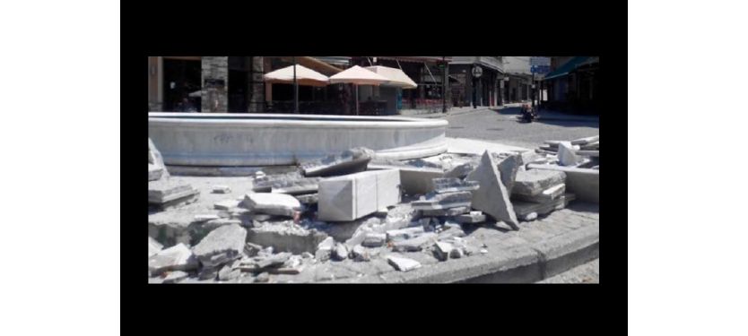 …”την Πέμπτη, 26/05/2016, εντελώς ξαφνικά, είδαμε να ξηλώνονται τα μάρμαρα από το σιντριβάνι της κεντρικής πλατείας Λιτοχώρου.”
