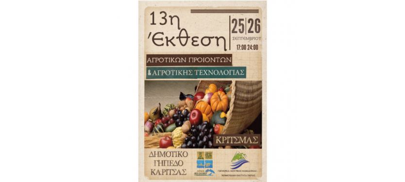 13η Έκθεση Αγροτικών Προϊόντων & Τεχνολογίας Δήμου Δίου – Ολύμπου