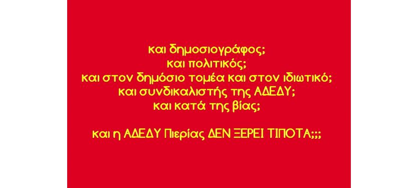 και η τοπική ΑΔΕΔΥ δεν ξέρει τίποτα;;; η ΑΔΕΔΥ (κεντρικά και τοπικά) είναι συνδικαλιστικό όργανο?