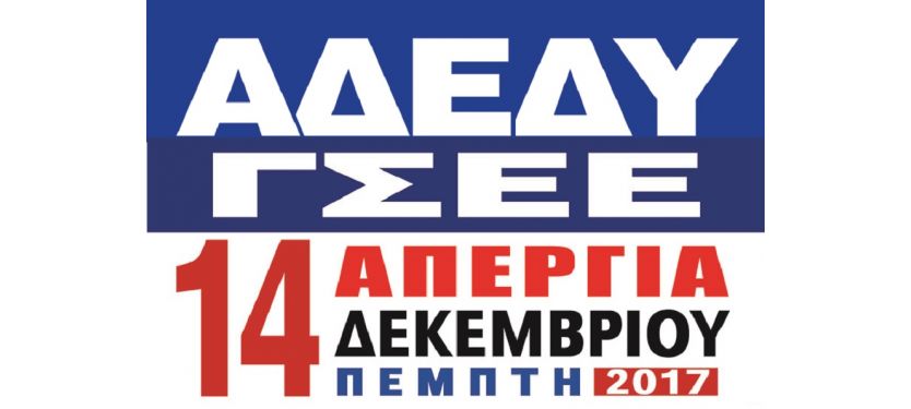 14 Δεκεμβρίου 2017 – γενική απεργία ΓΣΕΕ-ΑΔΕΔΥ