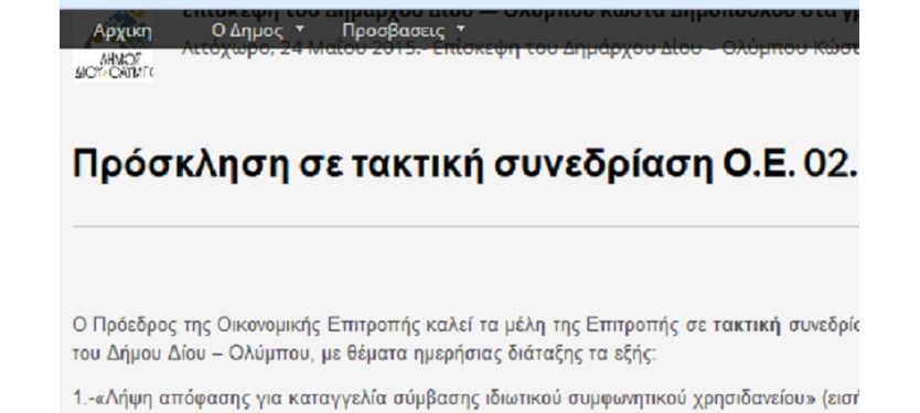 “Συνδημότισσες και συνδημότες του Δήμου Δίου – Ολύμπου, για άλλη μια φορά αναγκάζομαι να σας ενημερώσω μέσα από δελτίο τύπου για τα όσα τραγελαφικά συμβαίνουν στο Δήμο μας”